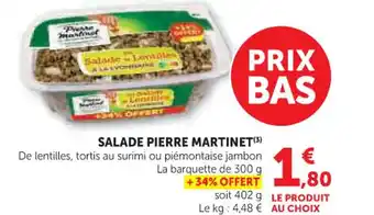 L'offre est disponible dans plusieurs magasins, vérifiez tous les produits pour obtenir le PIERRE MARTINET Salade le moins cher. Si vous souhaitez savoir si l'article est en vente avec une plus grosse remise dans un autre magasin, consultez la catégorie 'Supermarché'. Ces offres pourraient aussi vous intéresser : PIERRE MARTINET Salade, PIERRE MARTINET Salade & Pierre martinet - salade.