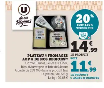 Offre Plateau 4 fromages le produit aop u de nos regions chez U Express