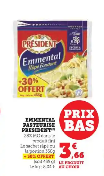 Actuellement en offre chez U Express : PRESIDENT Emmental pasteurise ✅ Valable du 3-02 au 15-02.