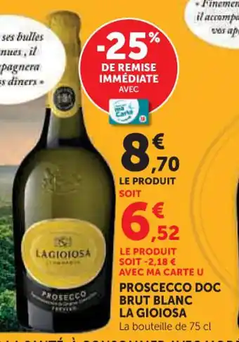 Proscecco doc brut blanc la gioiosa : offres et promos U Express à découvrir