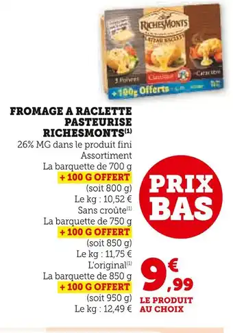 Offre Richesmonts fromage à raclette pasteurisé chez U Express