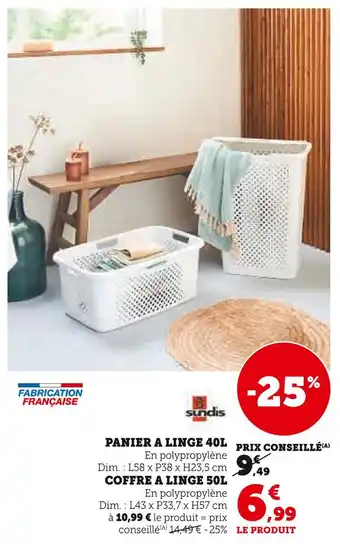 Actuellement en offre chez U Express : Sundis panier à linge 40l ✅ Valable du 16-12 au 11-01.