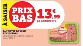 Quand TENDRIADE Paupiette de veau sera-t-elle en promotion ? Ou encore : "Est-ce que TENDRIADE Paupiette de veau sera en promotion la semaine prochaine ?" C’est une question fréquente. Beaucoup de consommateurs établissent leur liste de courses à l’avance. Pour cette raison, nous mettons en ligne les informations sur les promos à venir dès qu’elles sont connues. Cela vous permet de planifier vos achats et de faire de bonnes affaires. Consultez régulièrement notre site pour savoir si une nouvelle promo sur TENDRIADE Paupiette de veau arrive bientôt chez U Express.Questions fréquemment posées au sujet de TENDRIADE Paupiette de veau