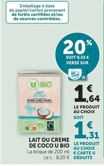 Actuellement en offre chez U Express : U bio lait ou crème de coco ✅ Valable du 17-02 au 1-03.