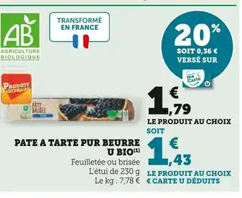 Offre U bio pate a tarte pur beurre chez U Express