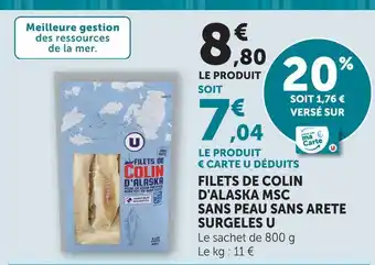 Offre U filets de colin d'alaska msc sans peau sans arête surgelés chez U Express