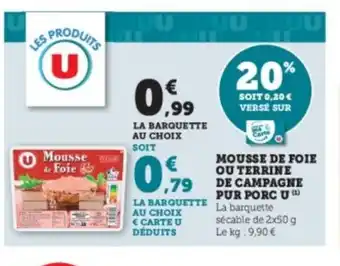 U Mousse de foie ou terrine de campagne pur porc 2 x 50 g