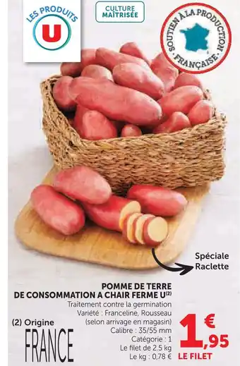 L'offre est disponible dans plusieurs magasins, vérifiez tous les produits pour obtenir le U pomme de terre de consommation à chair ferme le moins cher. Si vous souhaitez savoir si l'article est en vente avec une plus grosse remise dans un autre magasin, consultez la catégorie 'Supermarché'. Ces offres pourraient aussi vous intéresser : U pomme de terre de consommation à chair ferme, Pomme de terre de consommation a chair ferme u & Pomme de terre de consommation a chair ferme u.