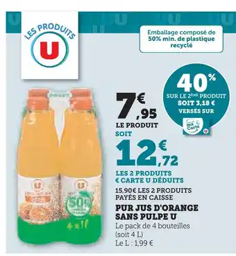 U pur jus d'orange sans pulpe : offres et promos U Express à découvrir