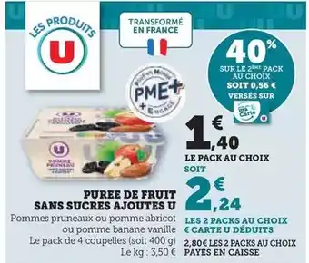 Offre U - puree de fruit sans sucres ajoutes chez U Express