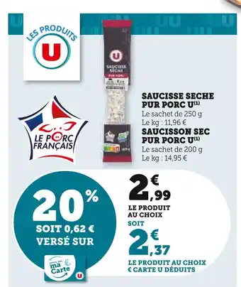 U saucisse sèche pur porc offres et promotions en ligne chez U Express