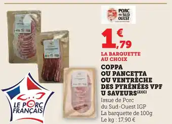 Actuellement en offre chez U Express : U saveurs coppa ou pancetta ou ventrèche des pyrénées vpf ✅ Valable du 3-02 au 15-02.