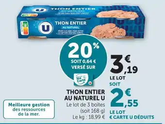 Actuellement en offre chez U Express : U thon entier au naturel ✅ Valable du 14-04 au 26-04.
