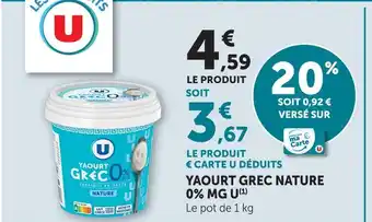 U yaourt grec nature 0% mg : offres et promos U Express à découvrir