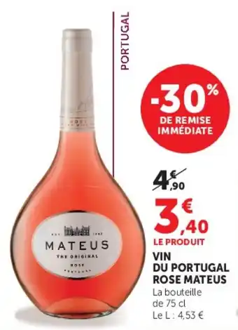 Actuellement en offre chez U Express : Vin du portugal rose mateus ✅ Valable du 28-04 au 10-05.