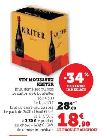 Actuellement en offre chez U Express : Vin mousseux kriter ✅ Valable du 6-01 au 18-01.