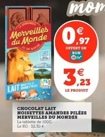 Actuellement en offre chez Utile : Chocolat lait noisettes amandes pilées merveilles du mondes ✅ Valable du 24-02 au 7-03.