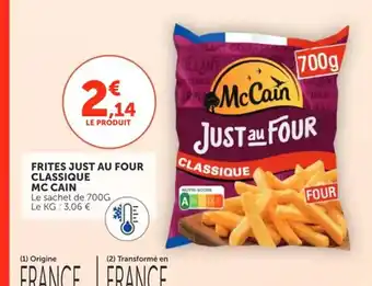 L'offre est disponible dans plusieurs magasins, vérifiez tous les produits pour obtenir le MC CAIN Frites just au four classique le moins cher. Si vous souhaitez savoir si l'article est en vente avec une plus grosse remise dans un autre magasin, consultez la catégorie 'Supermarché'. Ces offres pourraient aussi vous intéresser : JUST AU FOUR SURGELÉES CLASSIQUE OFFRE SPÉCIALE MC CAIN, Frites surgelées MC CAIN & Frites 83667 -.