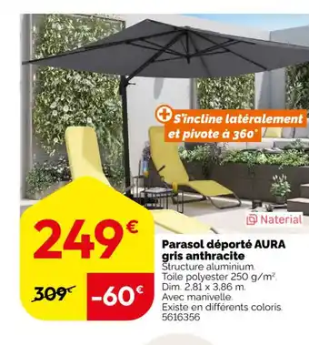 AURA Parasol déporté gris anthracite : offres et promos Weldom à découvrir