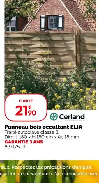 Actuellement en offre chez Weldom : CERLAND Panneau bois occultant ✅ Valable du 1-04 au 28-04.