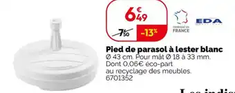 Offre EDA Pied de parasol à lester blanc chez Weldom