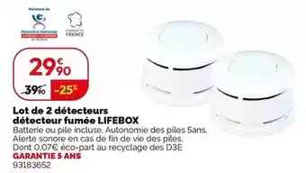 Cette Lot de 2 détecteurs détecteur fumée lifebox est disponible dans les magasins ci-dessous en fonction de votre emplacement configuré: