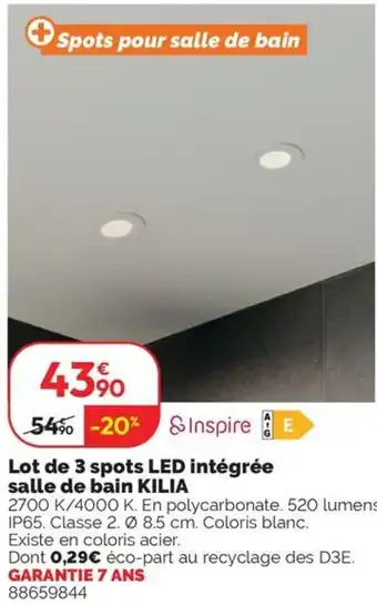 Offre Lot de 3 spots led intégrée salle de bain kilia chez Weldom