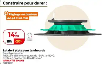 Y a-t-il une promotion sur Lot de 8 plots pour lambourde la semaine prochaine chez Weldom ?