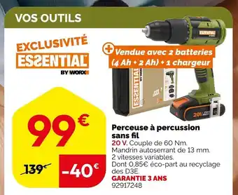 En plus de l'offre Perceuse à percussion sans fil, Weldom propose une large gamme de produits. Consultez le Catalogue Weldom hebdomadaire pour découvrir les meilleures offres et promotions. En plus de Perceuse à percussion sans fil, il y a aussi : Perceuse à percussion sans fil, Wokx perceuse à percussion sans fil & Perceuse visseuse à percussion sans fil titan 18v.
