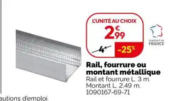 L'offre est disponible dans plusieurs magasins, vérifiez tous les produits pour obtenir le Rail, fourrure ou montant métallique le moins cher. Si vous souhaitez savoir si l'article est en vente avec une plus grosse remise dans un autre magasin, consultez la catégorie 'Bricolage'. Ces offres pourraient aussi vous intéresser : Rail, Montant & Fourrure 3000.