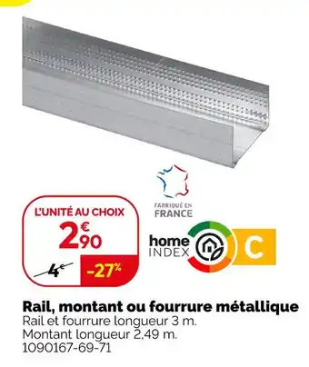 Rail, montant ou fourrure métallique