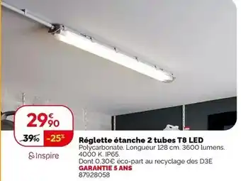Réglette étanche 2 tubes t8 led offres et promotions en ligne chez Weldom