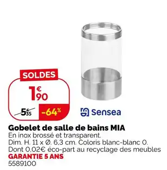 Actuellement en offre chez Weldom : Sensea gobelet de salle de bains mia ✅ Valable du 7-01 au 3-02.