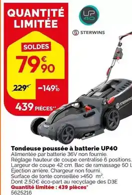 Sterwins - tondeuse poussée à batterie up40 : offres et promos Weldom à découvrir