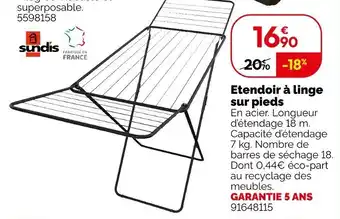 Offre Sundis Etendoir à linge sur pieds chez Weldom