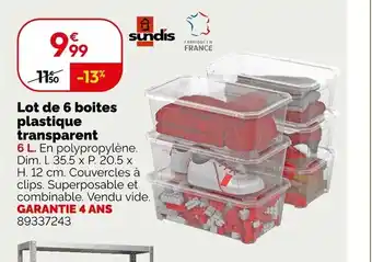SUNDIS Lot de 6 boites plastique transparent offres et promotions en ligne chez Weldom