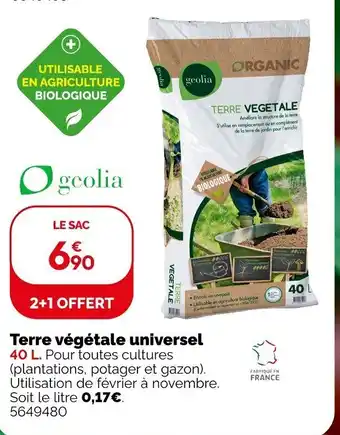 En plus de l'offre Terre végétale universel, Weldom propose une large gamme de produits. Consultez le Catalogue Weldom hebdomadaire pour découvrir les meilleures offres et promotions. En plus de Terre végétale universel, il y a aussi : Geolia terre végétale universel, Geolia terre végétale universel & Terre végétale.