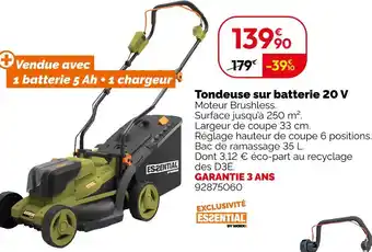 L'offre est disponible dans plusieurs magasins, vérifiez tous les produits pour obtenir le Tondeuse sur batterie 20 v le moins cher. Si vous souhaitez savoir si l'article est en vente avec une plus grosse remise dans un autre magasin, consultez la catégorie 'Bricolage'. Ces offres pourraient aussi vous intéresser : Tondeuse sur batterie 20 V, Tondeuse à batterie 2x20 v ecloz & Ecloz tondeuse à batterie 2x20 v ecloz.