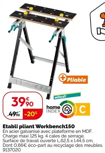 Actuellement en offre chez Weldom : Wolfcraft etabli pliant workbench150 ✅ Valable du 4-02 au 3-03.