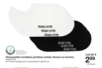 Chaussettes invisibles parfaites enfant, femme ou homme bénéficie actuellement d'une réduction chez Zeeman. Vous trouverez ici toutes les infos utiles sur les prix, la durée de validité et les conditions de l’offre. Pensez à consulter aussi d'autres offres et promotions similaires pour Chaussettes invisibles parfaites enfant, femme ou homme afin d’acheter toujours au bon prix. La promo Chaussettes invisibles parfaites enfant, femme ou homme est valable du 28-02-2026 au 13-03-2026. Offre terminée ? Pas de souci. D'autres offres sur ces produits sont peut-être déjà disponibles. Vous pouvez suivre cette catégorie de produits pour rester informé en cas de nouvelle promotion Chaussettes invisibles parfaites enfant, femme ou homme chez Zeeman. En comparant les offres, vous êtes sûr d’acheter au prix le plus bas possible.Questions fréquemment posées au sujet de Chaussettes invisibles parfaites enfant, femme ou homme