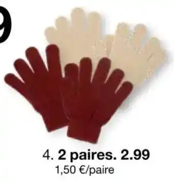 Actuellement, Gants est en promotion chez Zeeman. Toutes les informations utiles comme le prix, les conditions et la durée de validité sont affichées sur cette page. Consultez également les promotions similaires pour Gants, afin de faire le meilleur choix. La promo Gants est valable du 25-07-2025 au 31-12-2025. Si elle est expirée, regardez les autres offres équivalentes. Vous pouvez aussi suivre cette catégorie de produit pour être alerté lorsqu’une nouvelle promotion Gants apparaît chez Zeeman.Questions fréquemment posées au sujet de Gants