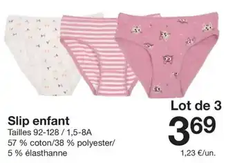 Actuellement, Slip enfant est en promotion chez Zeeman. Toutes les informations utiles comme le prix, les conditions et la durée de validité sont affichées sur cette page. Consultez également les promotions similaires pour Slip enfant, afin de faire le meilleur choix. La promo Slip enfant est valable du 27-12-2025 au 09-01-2026. Si elle est expirée, regardez les autres offres équivalentes. Vous pouvez aussi suivre cette catégorie de produit pour être alerté lorsqu’une nouvelle promotion Slip enfant apparaît chez Zeeman.Questions fréquemment posées au sujet de Slip enfant