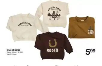 Actuellement en offre chez Zeeman : Sweat bébé ✅ Valable du 21-02 au 27-02.