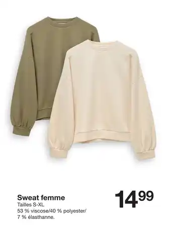 Actuellement en offre chez Zeeman : Sweat femme ✅ Valable du 28-02 au 13-03.