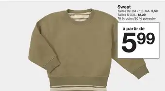 Cette Sweat est maintenant disponible chez Zeeman. Découvrez toutes les promos en cours et profitez de réductions intéressantes. Commandez Sweat en ligne via le site officiel de Zeeman ou achetez-la en magasin à un prix avantageux. Promocatalogues.fr réunit chaque jour les meilleures offres liées à Sweat. Envie d’être informé en premier ? Activez l’alerte en cliquant sur la cloche pour recevoir une notification gratuite dès que ce produit revient en promotion.Questions fréquemment posées au sujet de Sweat