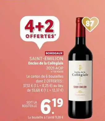 | Bordeaux saint-emilion enclos de la colliegiale 2023 aop | Lidl | 5,69 € | 06 septembre 2025 | 10 septembre 2025 | |||