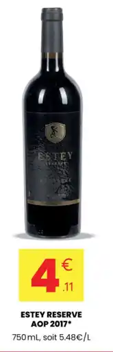| Estey reserve aop 2017 750 ml | Stokomani | 4,11 € | 25 février 2026 | 08 mars 2026 | |||