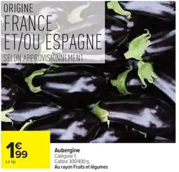 | 1 | Aubergine 300/400 g | Carrefour Market | 1,99 € | 21 avril 2026 | 03 mai 2026 | Voir l'offre | |||