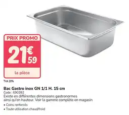 | Bac gastro inox gn 1/1 15 cm | Promocash | 21,59 € | 30 avril 2026 | 09 mai 2026 | |||