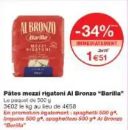 | Pâtes mezzi rigatoni al bronzo barilla 500 g | Monop' | 2,29 € | 1,51 € | -34% | 20 avril 2026 | 03 mai 2026 | |